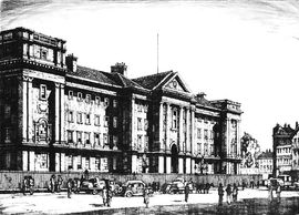 This 1938 line engraving with drypoint of Trinity College is one of a set of four prints on the city of Dublin published by Victor Waddington